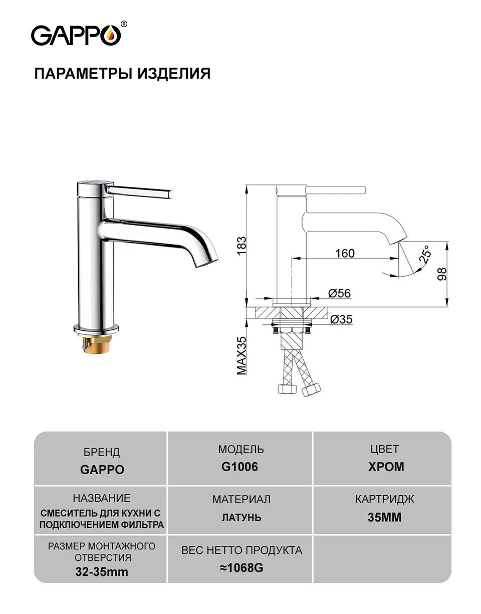 Vòi chậu GAPPO G1006 nhập khẩu nguyên hộp chính hãng GAPPO – Liên Bang Nga
